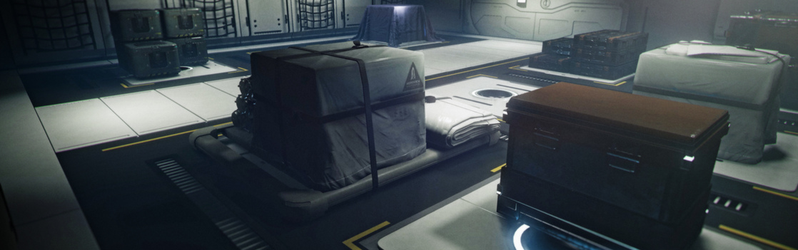 Einige von euch kennen vielleicht schon die Stor-All-Container, die ihr bei manchen Varianten der RSI Aurora gesehen habt. Es gibt zwei Typen: Kisten und Tanks. Kisten werden primär dazu verwendet, lose Waren wie Waffen, elektronische Komponenten, Artefakte und manchmal auch lebende Fracht zu verstauen. Tanks werden für Gegenstände benötigt, auf die der Spieler normalerweise nicht direkt zugreifen würde, wie etwa Brennstoffe, Erze, Gase usw. Diese Container können vom Spieler mit Hilfe eines von ihm gehaltenen Anti-Gravitations-Impulsgebers direkt bewegt werden.